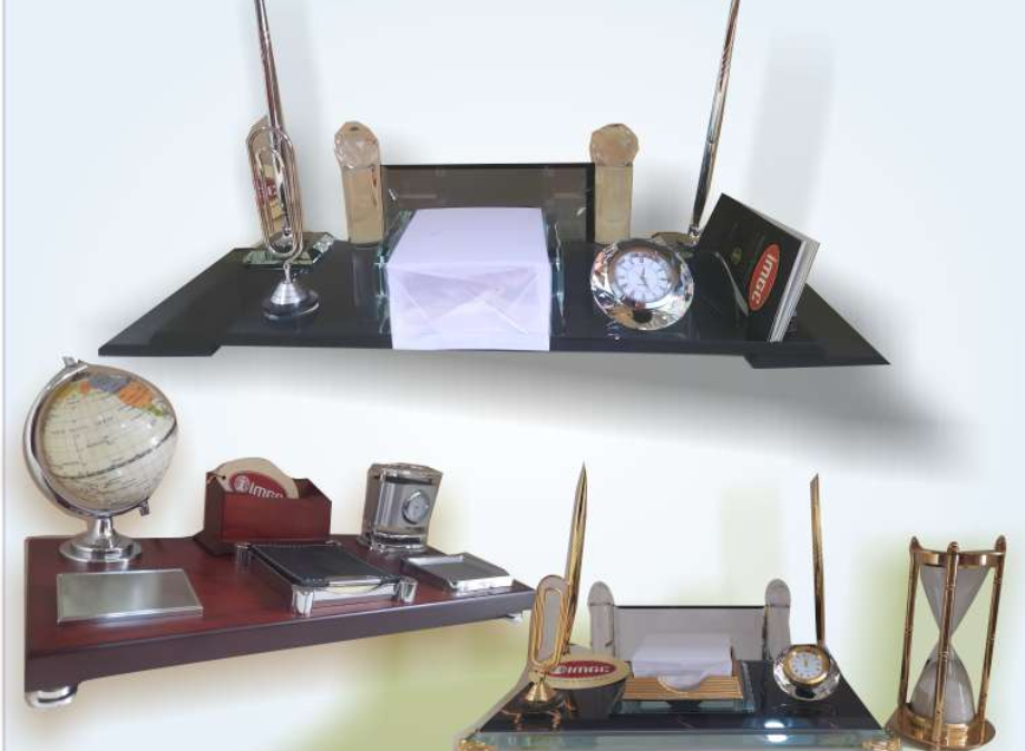 İsimlikli Masa Setleri çoğüunlukla Kristal ya da Ahşap malzemelidir.Masa Setinin yanında bir ikonik biblo, bir Newton Topları ya da bir Kum Saati gibi şık objelerin bulunması da bir Ofis Masasına apayrı bir görsellik katmaktadır